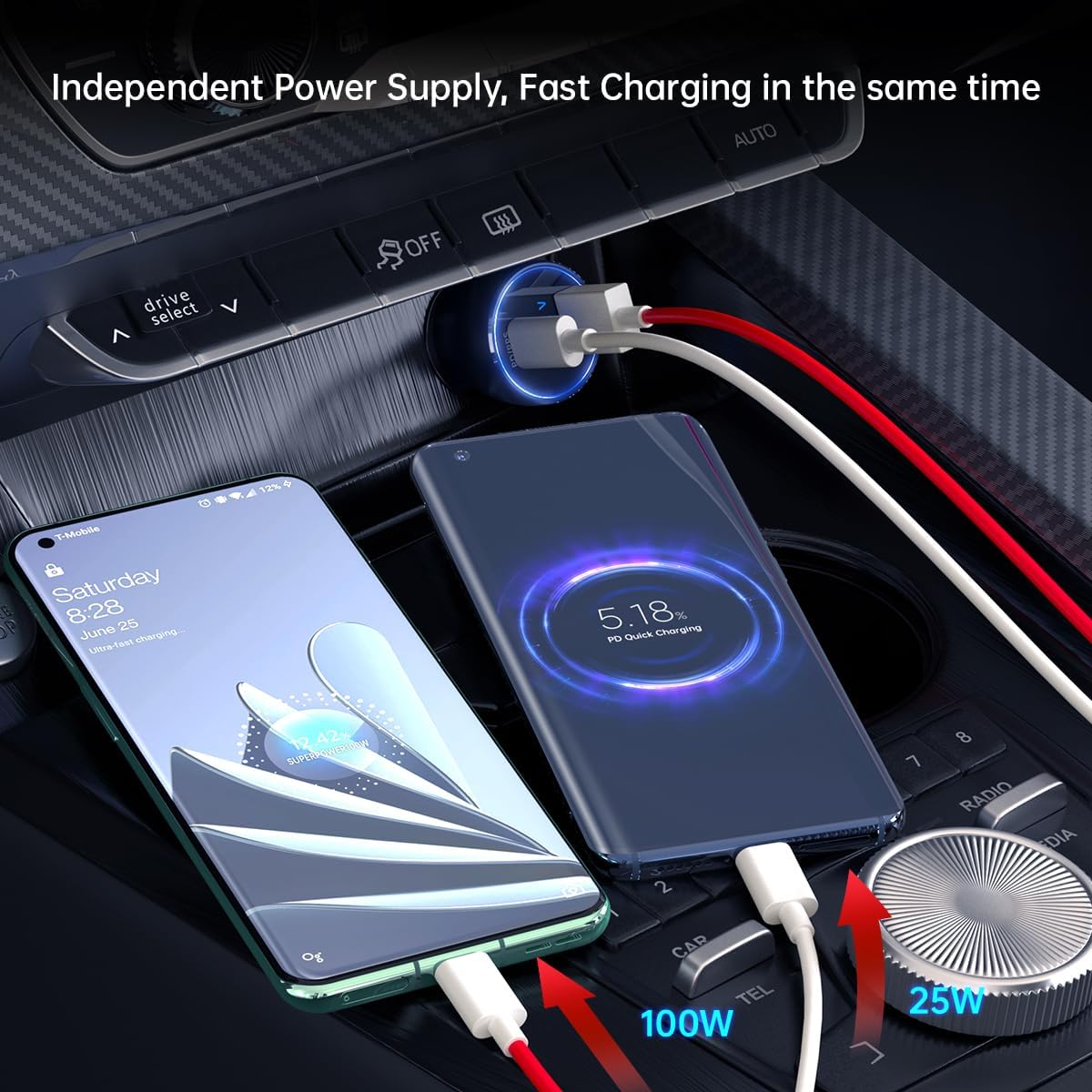 | BuiltIn Media | Ultra-fast Car Charger, 7.3A USB-A to C Cable, 3A USB-C to C Cord |