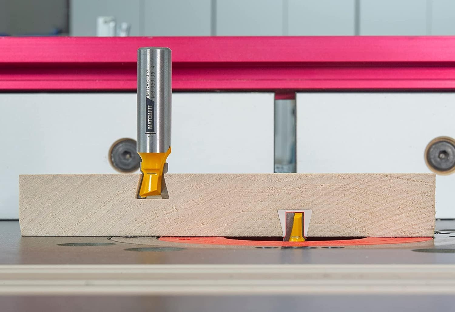 Introducing new MATCHFIT Dovetail clamp Pro create jigs and shop fixtures with the incredibly versatile MATCHFIT Dovetail clamp Pro. With the included ½” 14-degree MATCHFIT Dovetail router bit, you can route your own tracks, and make every inch of your workshop more functional. This revolutionary all-in-one package includes: - (2) MATCHFIT Dovetail clamps - (1) MATCHFIT Dovetail router bit - (1) setup gauge - (1) set of the all-new Dovetail hardware variety pack Buy all together to save and work smarter. Product Description: it’s everything you need to create your own track system and take your woodworking to the next level. Use the MATCHFIT setup gauge to set the cutting depth of the dovetail router bit, and create your own tracks. The dovetail clamps and dovetail hardware move through the dovetail grooves below the surface of the material, allowing you to create a variety of jigs that move freely, and secure your work piece anywhere you can route a Groove. Create your own fences, stops, hold-downs, and assembly fixtures in a snap. The dovetail clamp Pro works great with the following: tall fence/jointing sleds table saw sleds auxiliary fences assembly tables edge guides and stops Miter saw bench stops and hold-downs add to your cart today! Route your own tracks and make every inch of your shop more functional. The Micro Jig MATCHFIT Relief Router Bit is specifically designed to remove 55% of waste material before routing dovetail grooves with the MATCHFIT Dovetail Router Bit. Starting with a relief groove improves the cut quality of dovetail grooves, and prolongs the lifespan of your MATCHFIT Dovetail Router Bit. Designed to be used with MATCHFIT Dovetail Router Bit. Features tear out-free 1/4 relief groove, 11/32" laser-cut depth guide router collet safety line and 1/16top radius, 3-degree up shear carbide. MATCH FIT Dovetail Router Bit is sold separately.