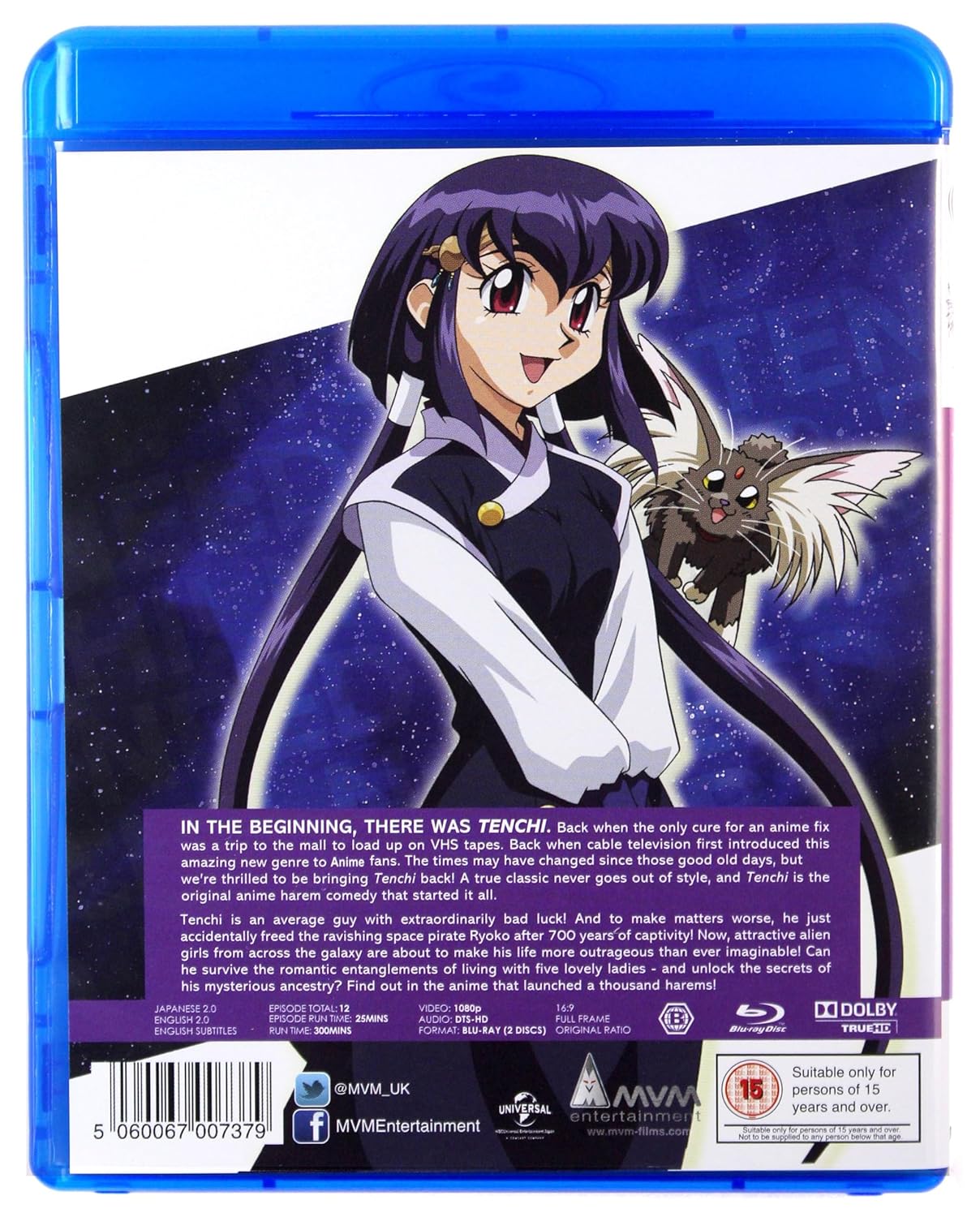 Synopsis:Tenchi Muyo OVA CollectionTenchi is an average guy with extraordinary bad luck! And to make matters worse, he just accidentally freed the ravishing space pirate Ryoko after 700 years of captivity! Now, attractive alien girls from across the galaxy are about to make his life more outrageous than ever imaginable! Can he survive the romantic entanglements of living with five lovely ladies - and unlock the secrets of his mysterious ancestry? Find out in the anime that launched a thousand harems!The first two OVA series of the anime franchise about a teenage boy who encounters a number of peculiar girls from space. Tenchi Masaki (voice of Masami Kikuchi) is an ordinary teenager with an ordinary life until he stumbles onto a cave containing a centuries old space pirate and unwittingly releases her. From this point Tenchi's life is turned upside down as he discovers his true heritage and contends with the advances of no less than five girls from beyond the stars. Series 1 episodes are: 'Ryoko Resurrected', 'Here Comes Ayeka!', 'Hello, Ryo-Ohki!', 'Mihoshi Falls to the Land of Stars', 'Kagato Attacks!', 'We Need Tenchi' and 'The Night Before the Carnival'. Series 2 episodes are: 'Hello Baby!', 'Sasami and Tsunami', 'I Love Tenchi', 'The Advent of the Goddess', 'Zero Ryoko' and 'Here Comes Jurai'.
